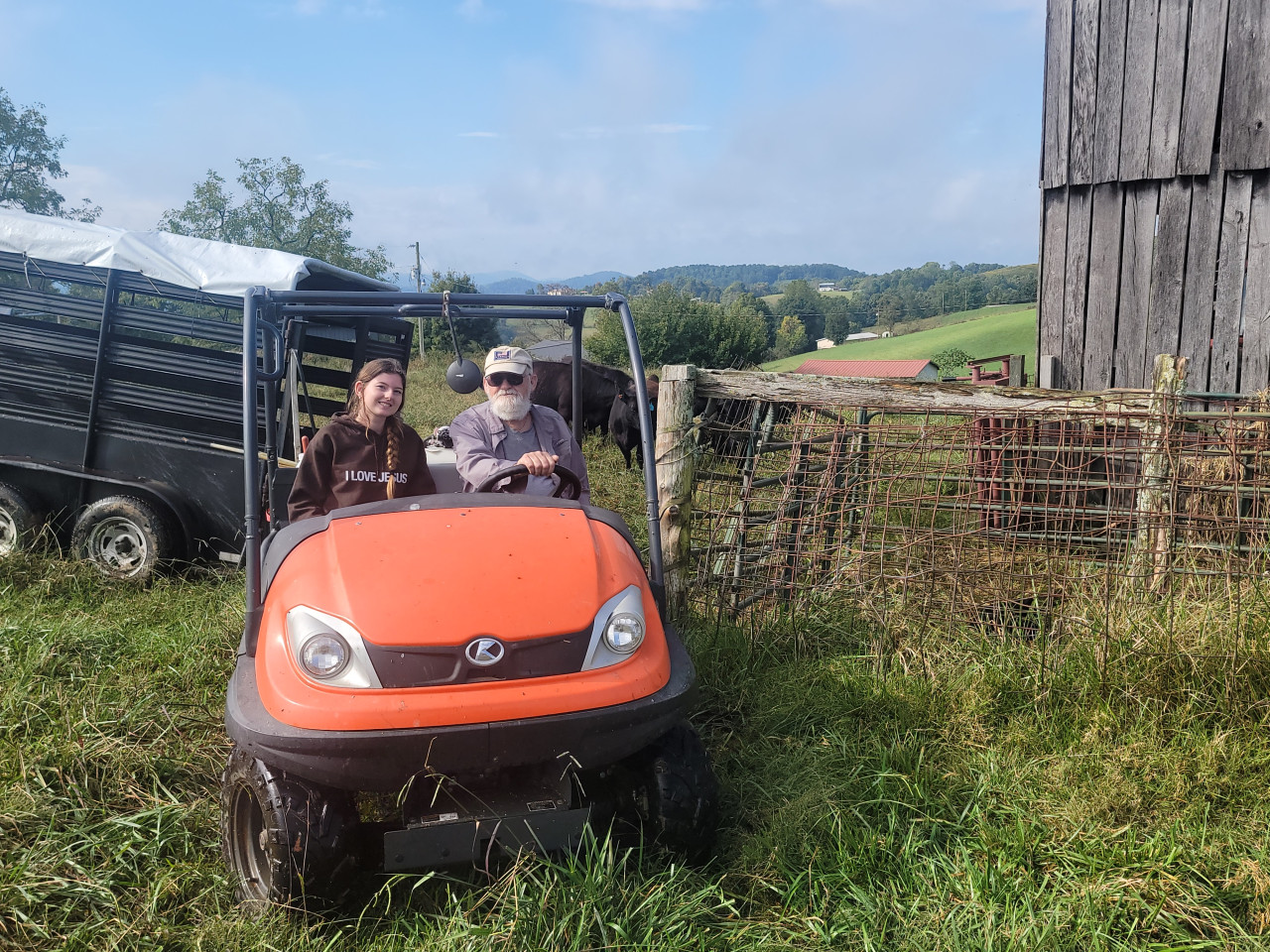 Today Evie and her Dad went to bring her cow to her new home. Harold showed us how to load cows on the trailor, then came over to supervise the electric fence project. Corey and Britney are electric fence masters and helped all day long to get a great area for the mamma cow and her calf.